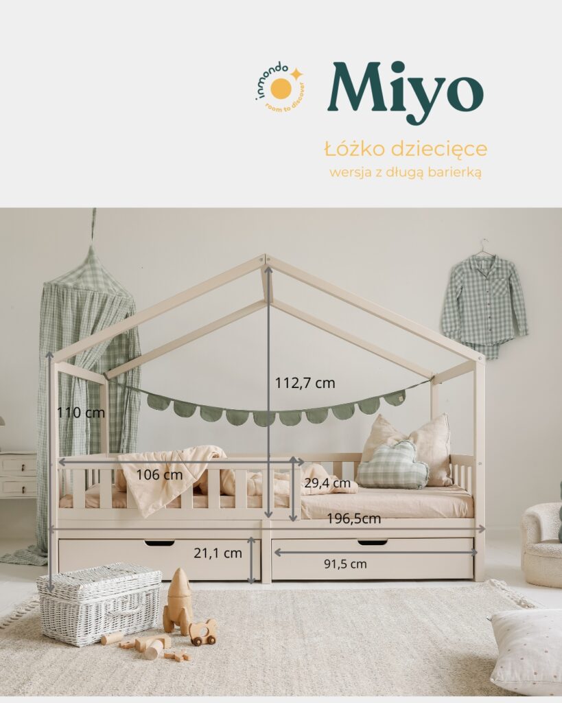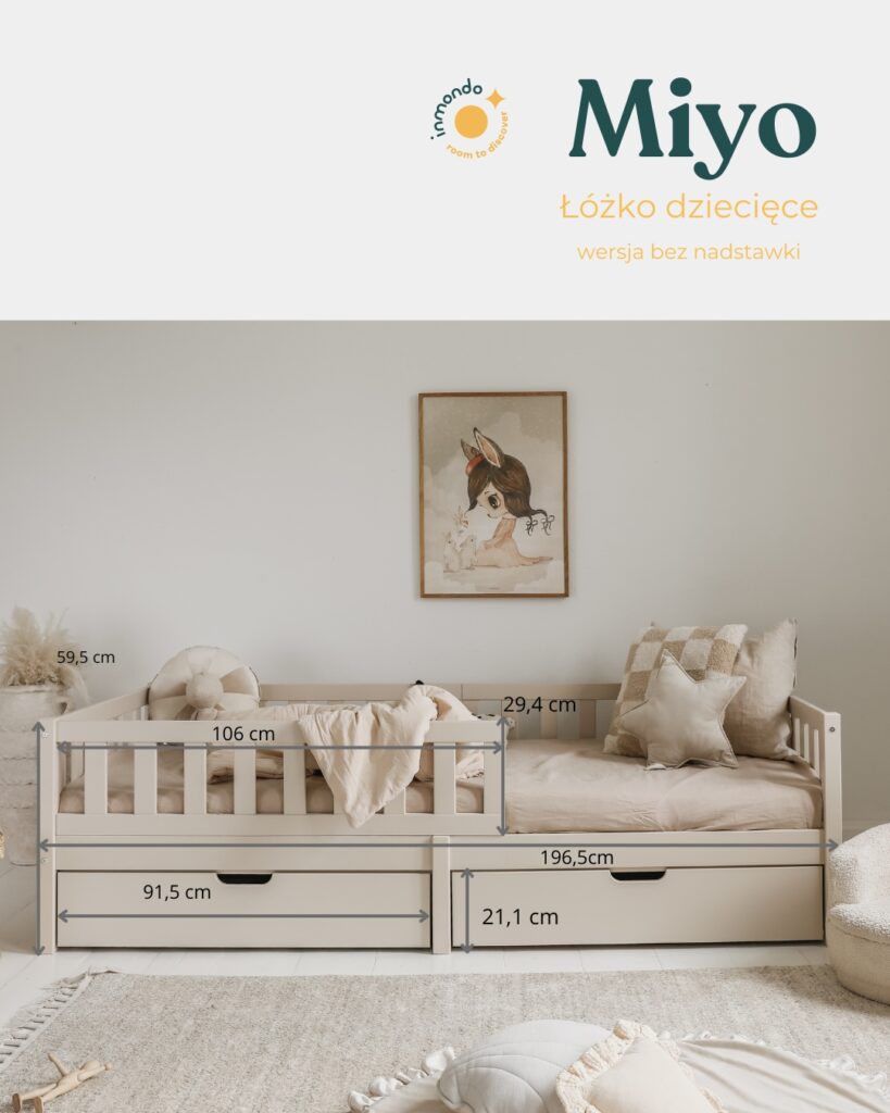 MIYO children's bed is not only a stylish piece of furniture, it is, above all safe, cosy and functional spacethat adapts to your child's needs!