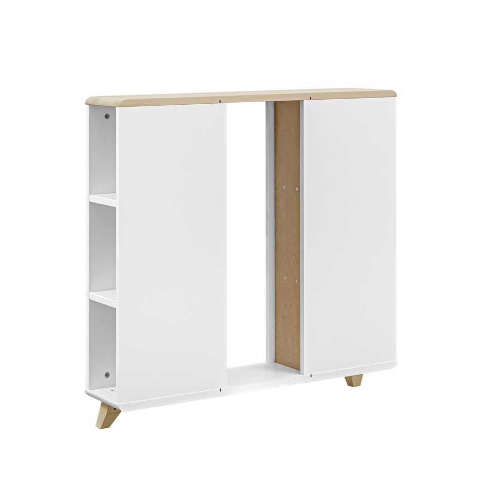 Dedicated to the 3S High Chest of Drawers, the changing table will be a big help for every mother. The shelves are mounted on the back of the chest of drawers. The changing table has 6 shelves that allow quick access to the necessary utensils needed for baby care. The rounded edges of the sides provide a safe and comfortable changing area.